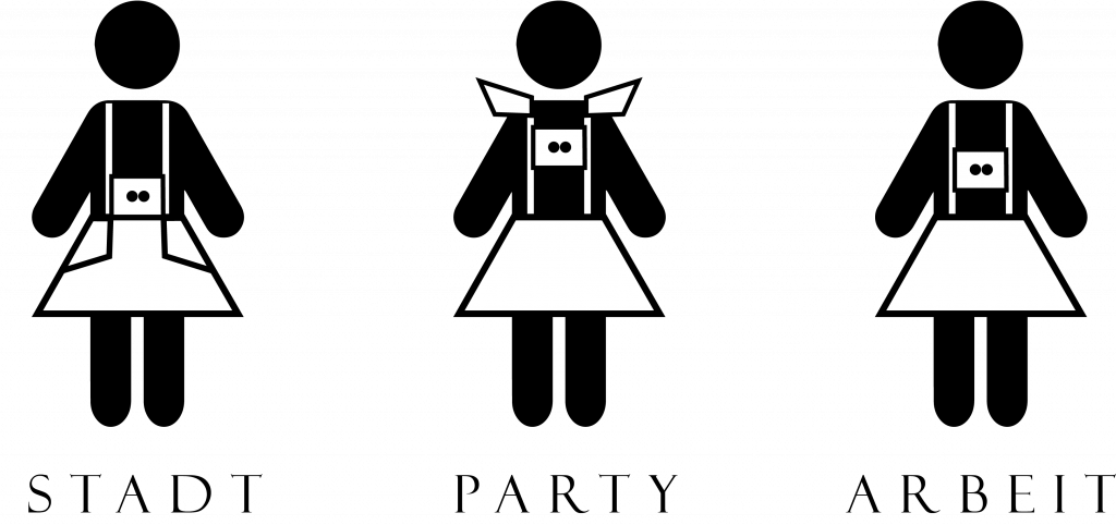 Als Hybrid aus Rock, Latzhose und Epauletten wurde sie entworfen, um Kreativität und Funktionalität zu verbinden.